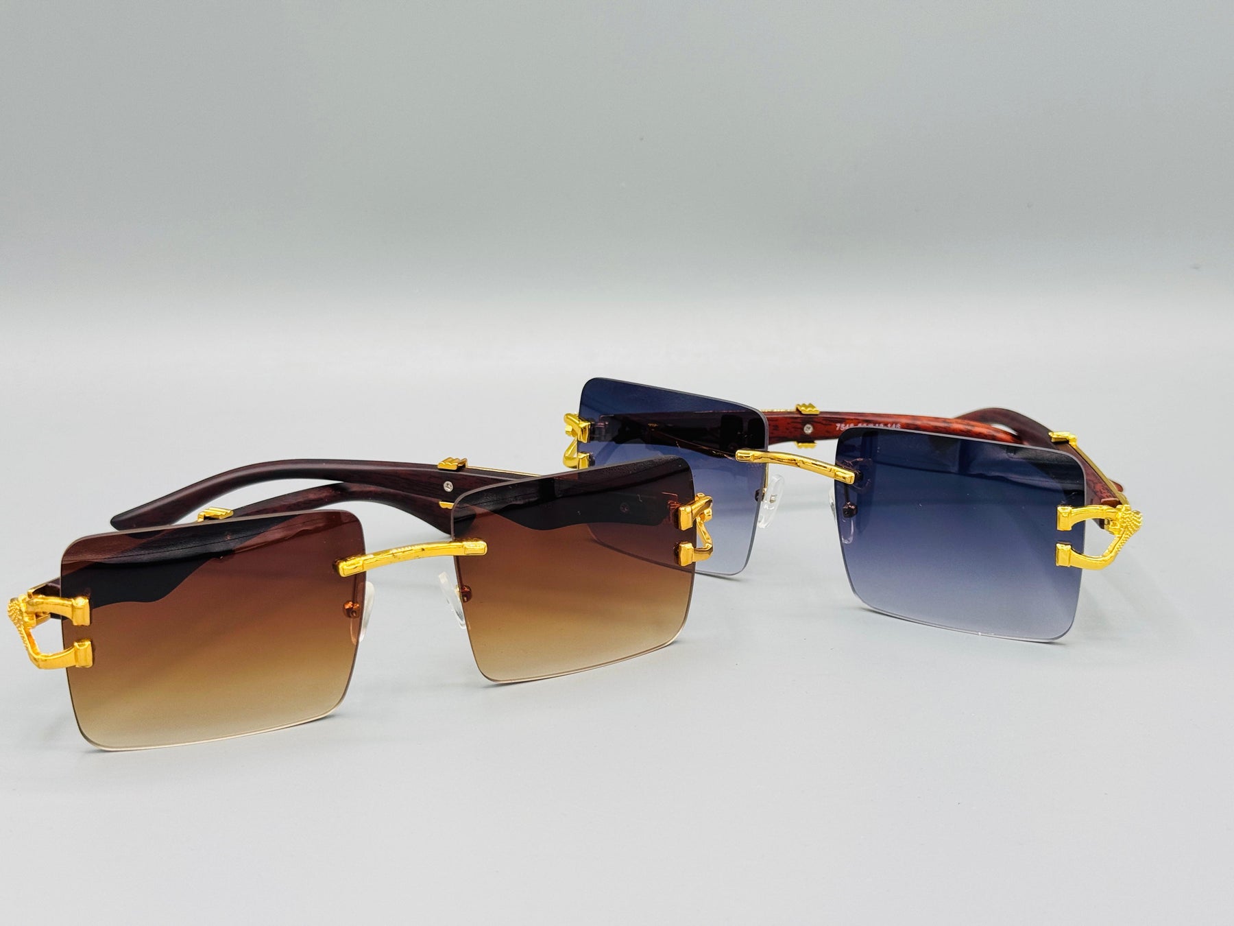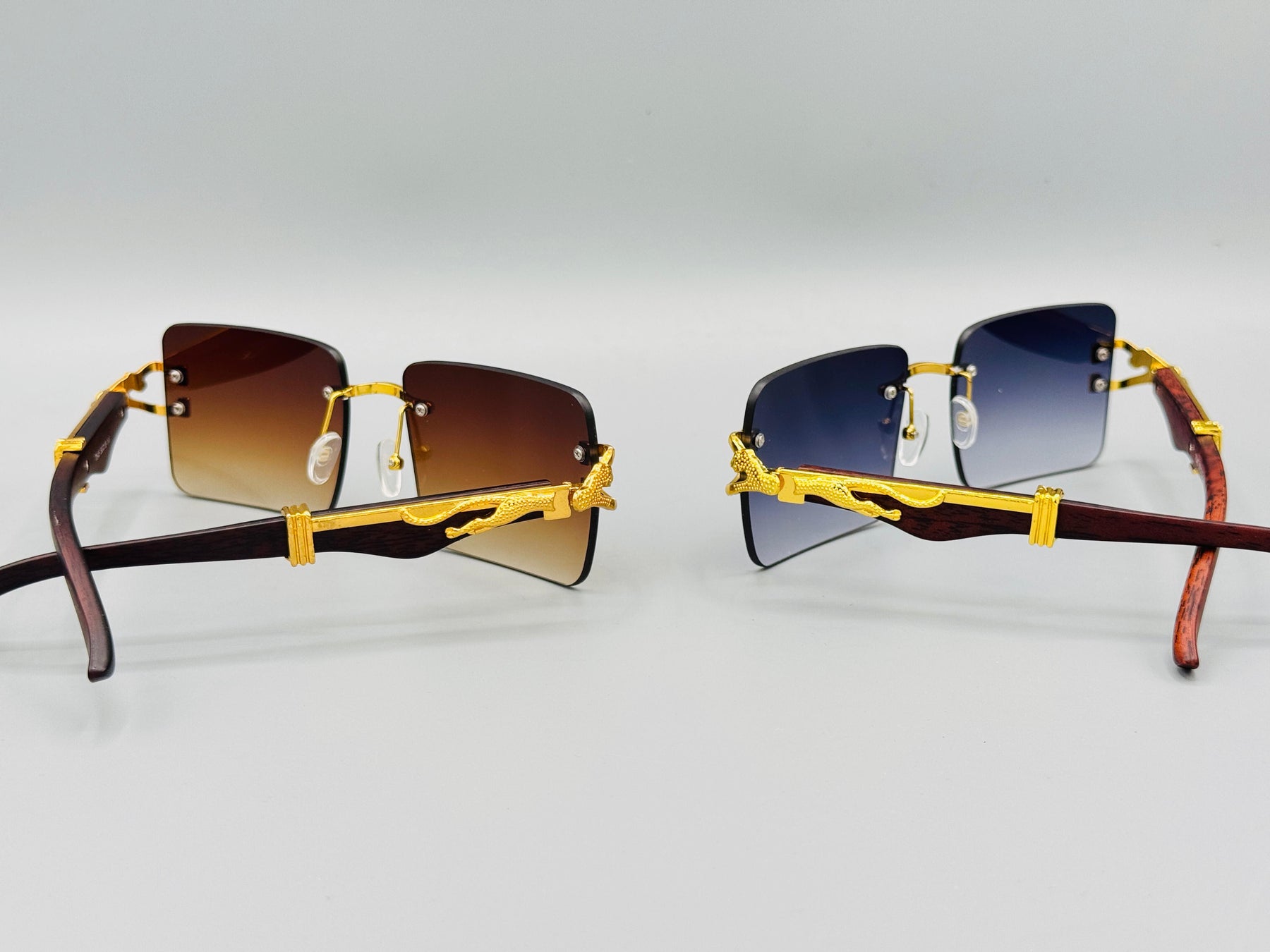 Introducing the CRB40, the latest in designer eyewear. These rimless sunglasses feature a bold and stylish cheetah print, perfect for any fashion-forward individual. With wooden sides and a premium box, these sunglasses exude luxury and quality. Upgrade your style with the CRB40.